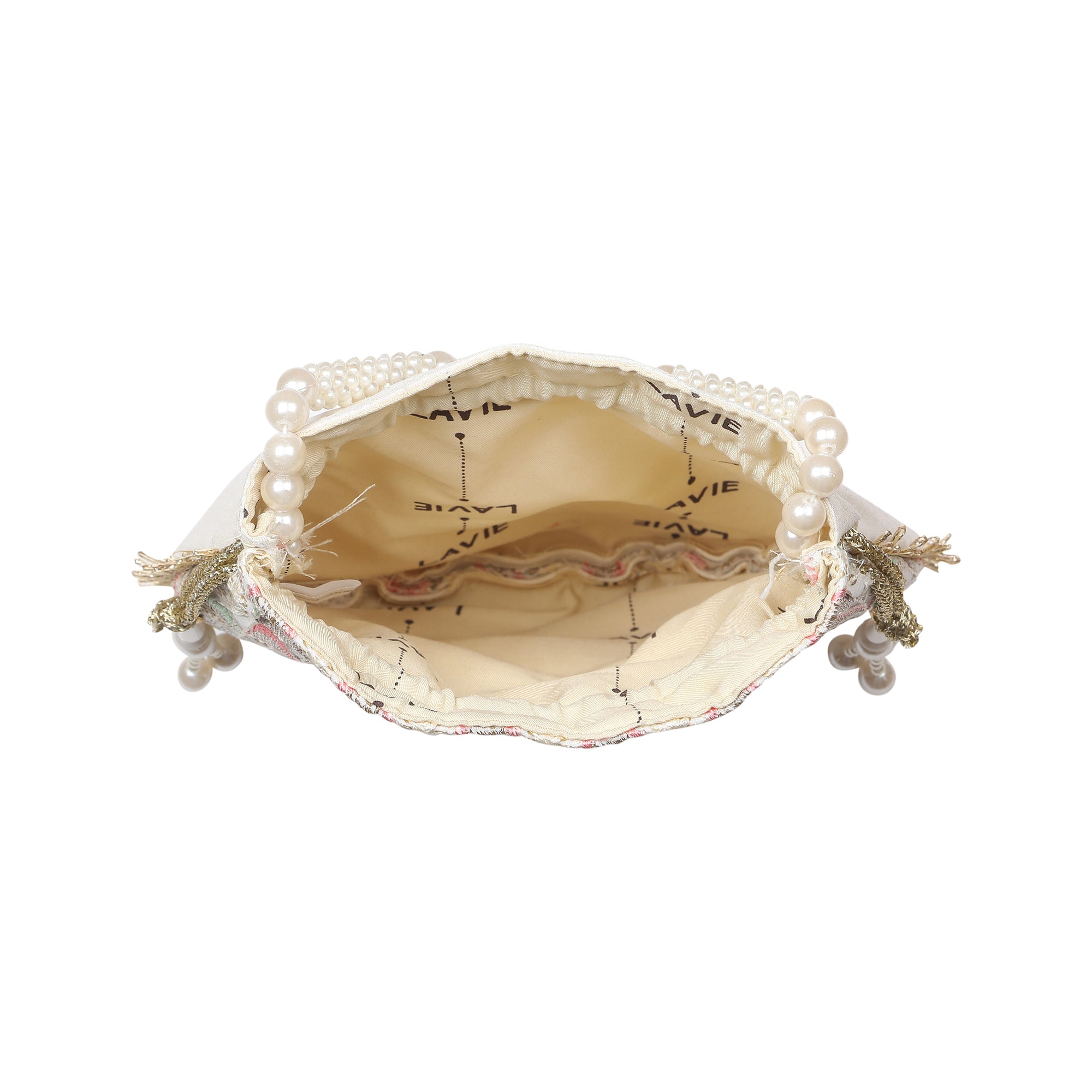 • This Potli bag features a beautifully crafted, high-quality pearl handle on the top for easy carrying and branded Lavie lining..