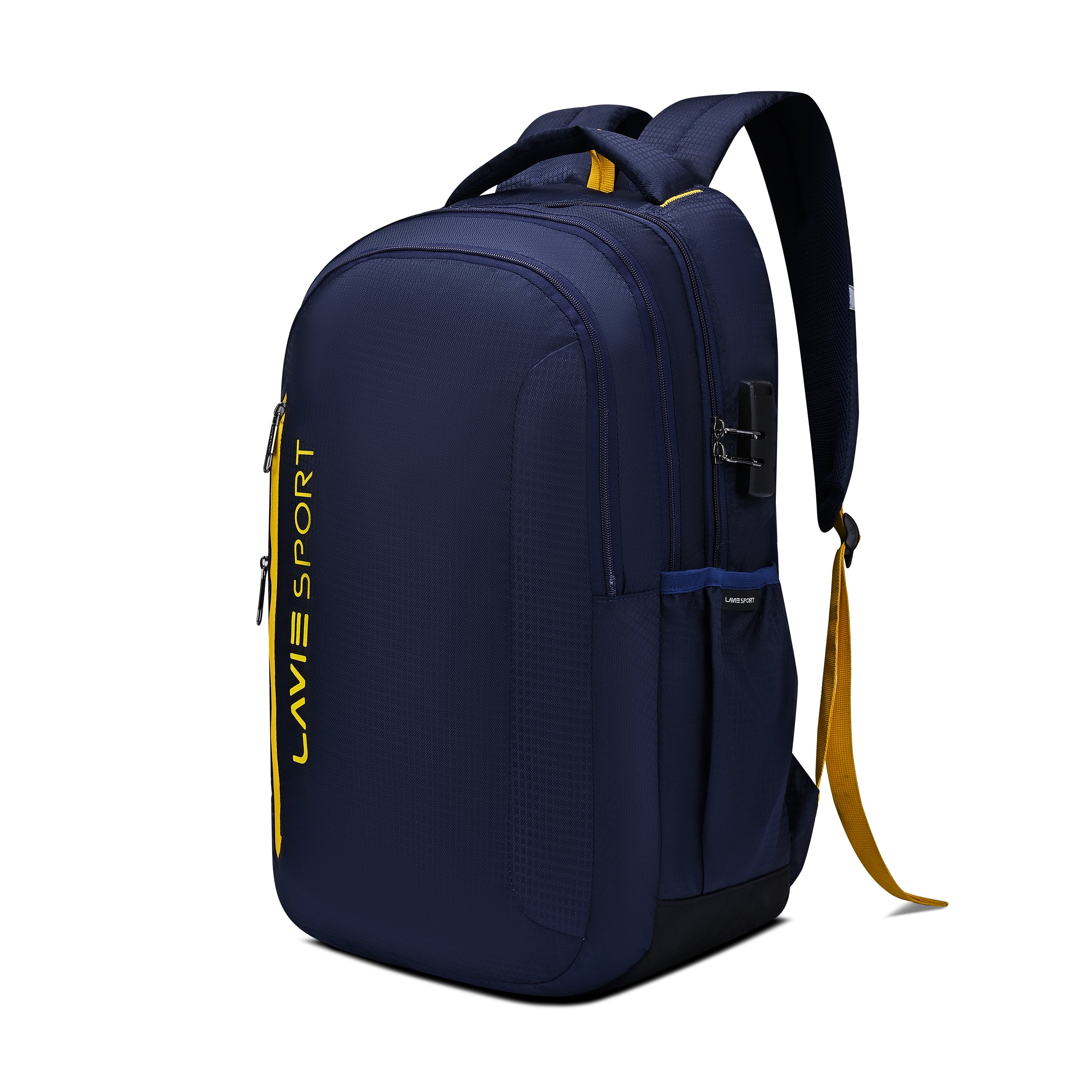 • The LavieSport Backpack is designed for your daily hustle. It features 3 spacious compartments with a front vertical pocket, padded laptop sleeve, and a combi lock for secure travel. Bottle pockets and a rain cover keep you ready for any weather, while the mesh-padded back and adjustable shoulder straps ensure all-day comfort..
